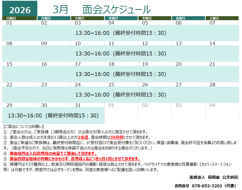 令和8年3月度面会スケジュールのお知らせ